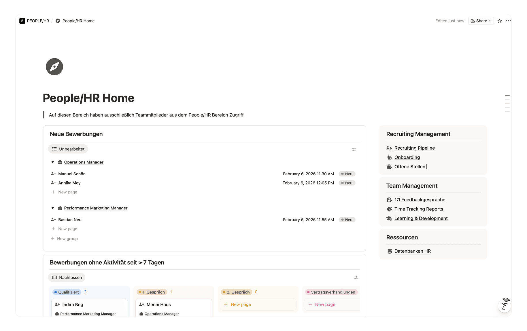 Von der Einstellung bis zur Weiterentwicklung. Hier managt ihr Recruiting, pflegt Feedback-Kultur durch regelmäßige 1:1s, plant Urlaube und organisiert Team Events.