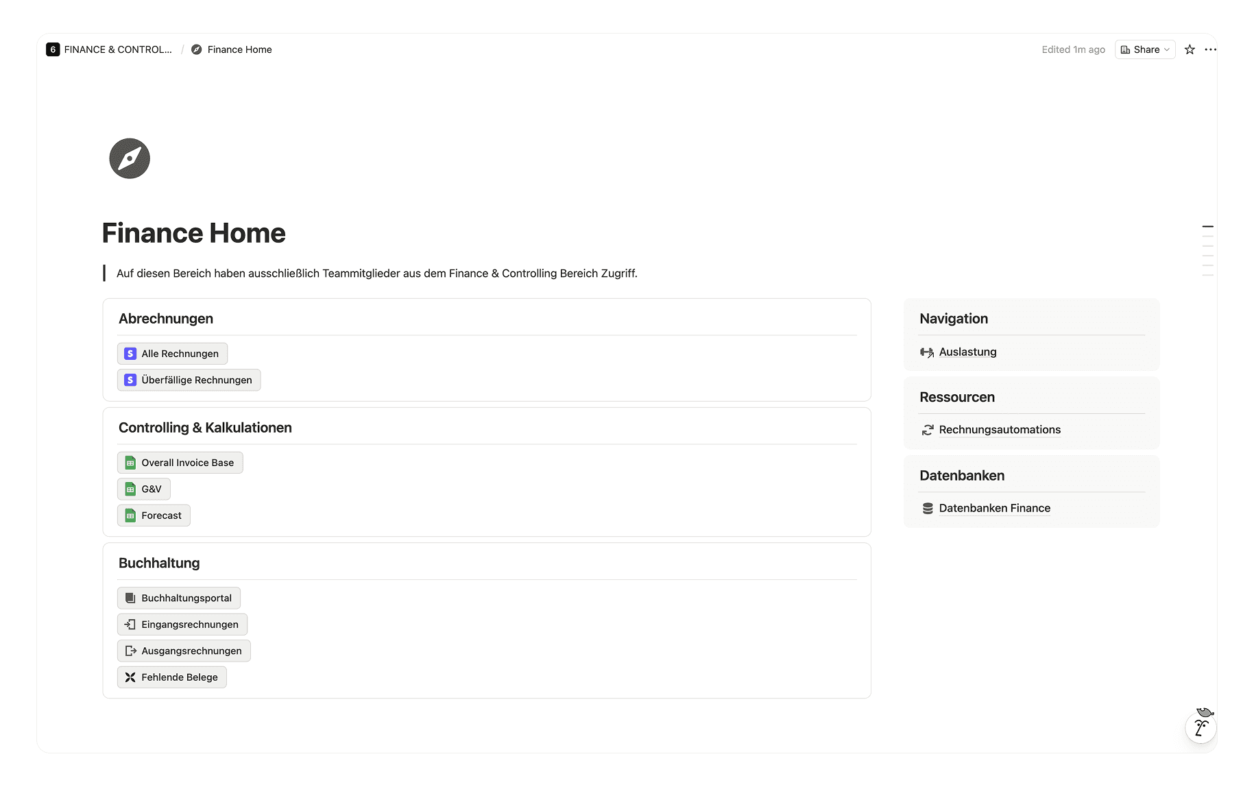 Notion ist weder ein Rechnungs- noch Buchhaltungstool, aber von hier aus könnt ihr euch in die relevanten Google Sheets, Stripe etc. klicken. Genau da, wo die Detailanalysen, Rechnungen und Co gemanaged werden.