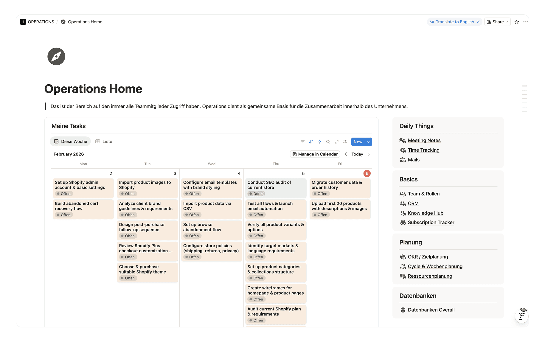 Ein Operating System ist die zentrale Ebene, die Projekte, Wissen und Prozesse miteinander verbindet. Von dort aus managet ihr euer gesamtes Unternehmen.